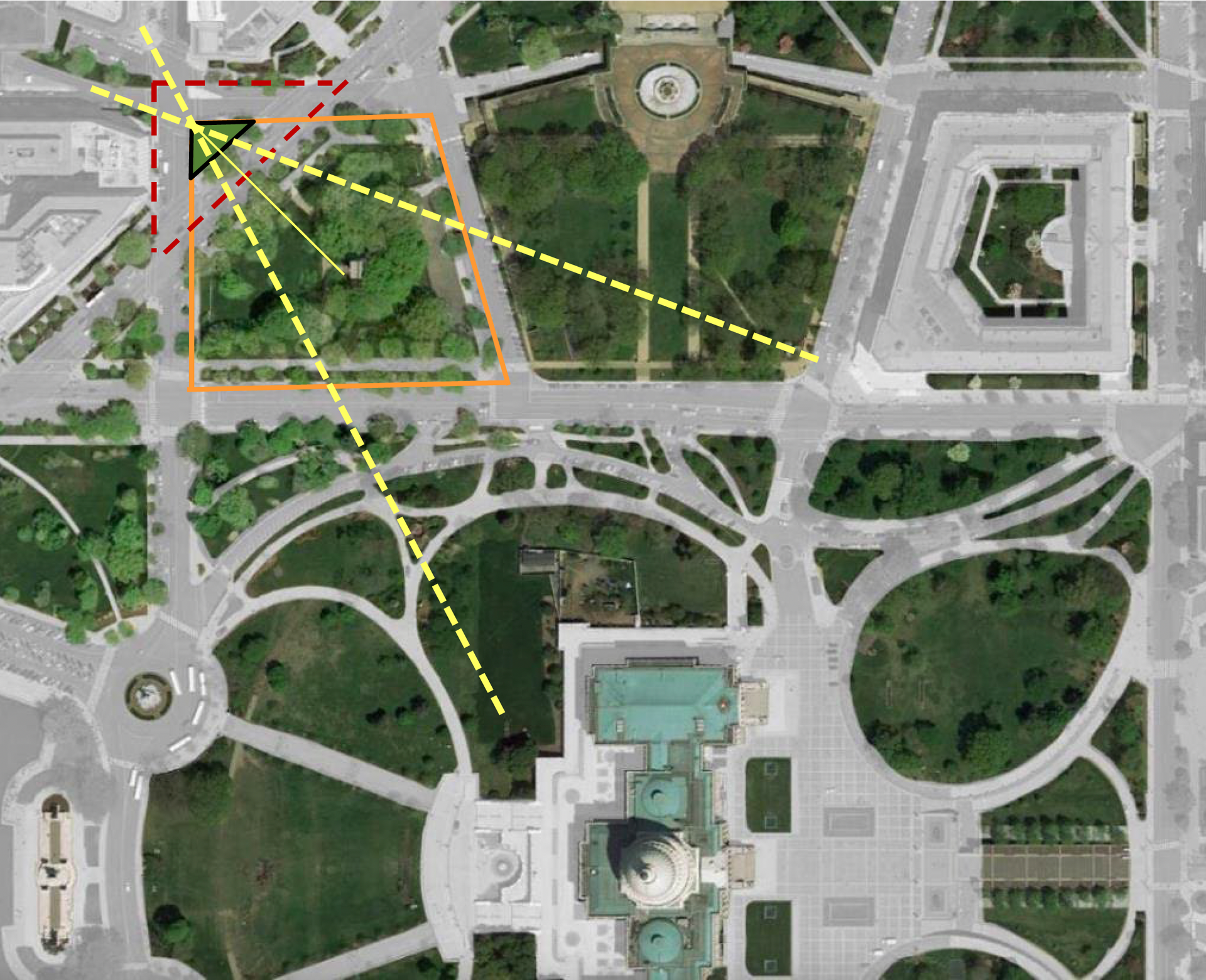 Peace Corps Park will stand on a triangular National Park Service site in the heart of Washington, D.C. near the U.S. Capitol and National Mall. Bounded by 1st Street to the west and C Street to the north, the site faces Louisiana Avenue opposite Taft Park and three blocks from Union Station, the city’s major transportation hub.